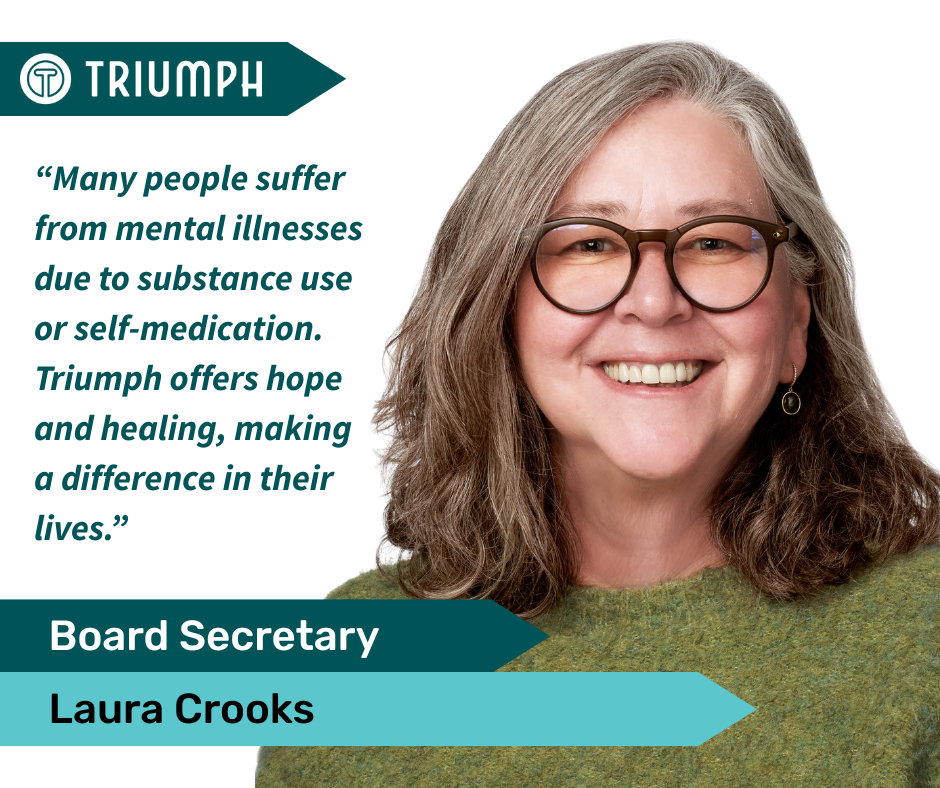 Triumph is blessed with a Board of Directors that understands and is connected to the very core of Triumph’s mission. Many of our Board Members have become part of our very legacy through the years because they believe in helping families and individuals find recovery and health. If you also yearn for an opportunity to give back and support our organization through service on the Triumph Board of Directors, please contact us at [email protected].